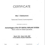 Диплом ФВ №187020 от 22.06.1992 Выдан: Ордена Трудового Красного Знамени медицинский институт г.Новосибирск Специальность: Стоматология Квалификация: Врач-стоматолог