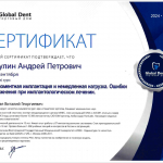 Универсал. Имеет Сертификаты специалиста по таким специальностям: стоматология ортопедическая и стоматология хирургическая. Регулярно проходит обучение на семинарах, симпозиумах и мастер-классах по самым важным и перспективным направлениям в практикуемых дисциплинах.